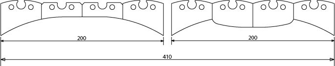 Цей набір ножів дозволяє підгонку розмірів бруса. Висота може бути встановлена ??максимально до 410 мм, ширина до 120-160 мм. Профіль може бути доповнений іншими ножами і змінити розмір на 200 мм.