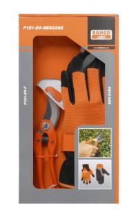 Набір для догляду за садом. Рукавички та багатофункціональний секатор. Вузькі леза забезпечують легкий доступ. Штамповані і пресовані сталеві рукоятки.
